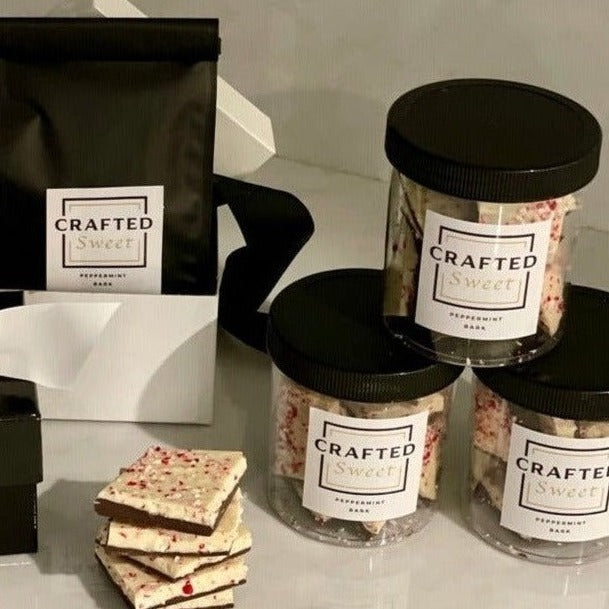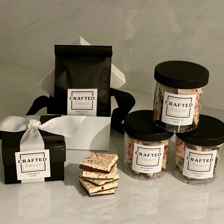 Our deliciously addictive peppermint bark is lovingly packed in stay-fresh packaging to ensure every bite is as delicious as the first. Our premium boxes, beautifully designed to resemble a gift, are so enticing you might want to keep them all to yourself. For a delightful alternative, our candy jars are the perfect choice. Pick up a jar or two and indulge in our peppermint bark anytime!