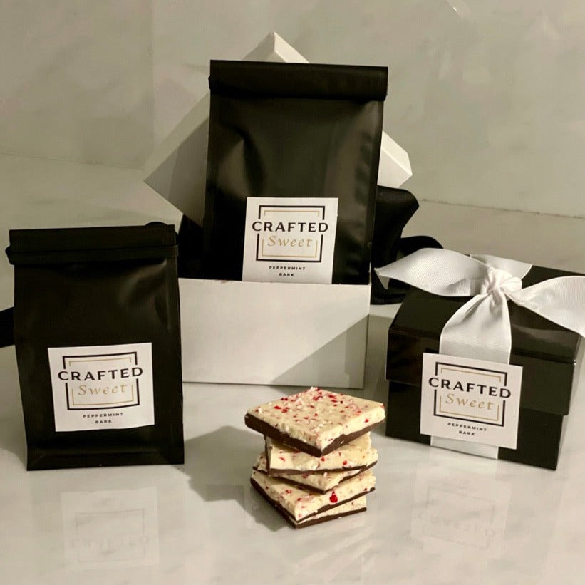 Our peppermint bark is a delicious combination of peppermint, smooth white and fine dark chocolate. Our Holiday gift to you!